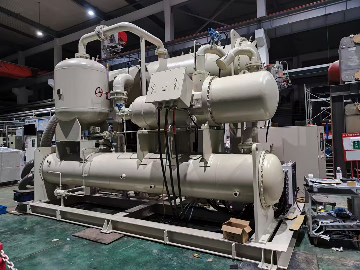 إنه يستخدم ضاغط لولبي مزدوج شبه محكم تم تطويره بشكل مستقل من Hanbell (الشهادات الدولية: ISO-9001، UL، CE، Swiss Lloyd's Register، وما إلى ذلك)، مع دمج المحرك والضاغط في وحدة واحدة، مما يمنع تسرب الزيت؛ إنه يتميز بكفاءة نقل عالية وضوضاء تشغيل منخفضة. بالاشتراك مع نظام إرجاع زيت مضخة القاذف المستقل، فإنه يضمن عودة مستقرة للزيت حتى في ظل ظروف التحميل الكامل، مما يطيل عمر الوحدة بشكل كبير.